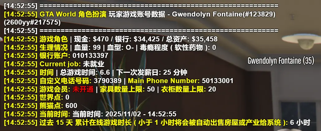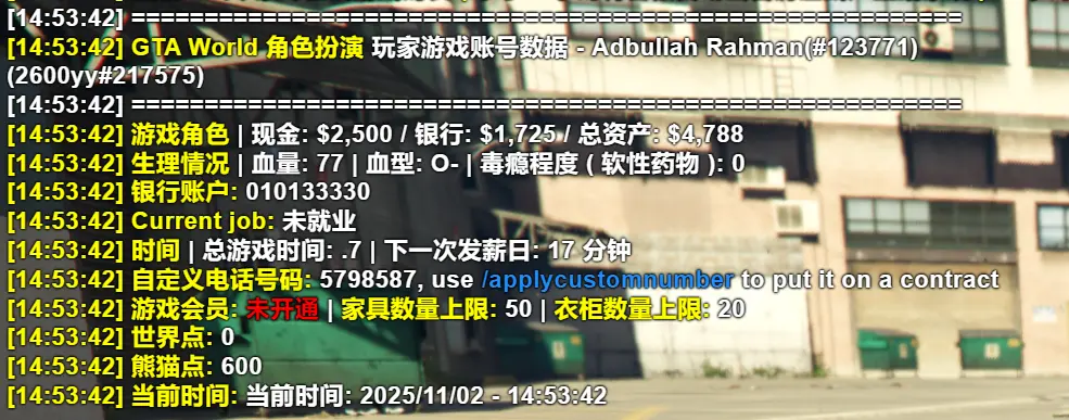 10.15链接一个未编辑的游戏统计截图(通过/stats访问) 所有角色